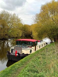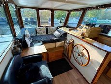 58' long and 13'6" wide, Papillon is a reverse layout Dutch barge built by Pinder in 2000. From wheelhouse to forepeak, she is updated with Victron technology, and supplied with both a multi-fuel stove and an Alde heating system.